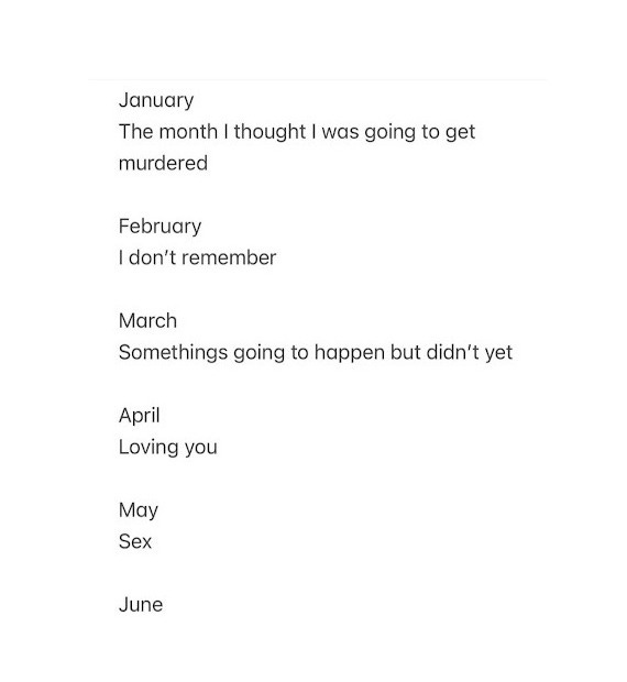 Deserving makes me think of this unfinished calendar I posted in 2024. A lot of the comments were like, I’m so jealous, or, how do I have this kind of year? I remember being so shocked. We see the words sex and love and get stupid. Maybe we think we need to have survived something to deserve anything good.